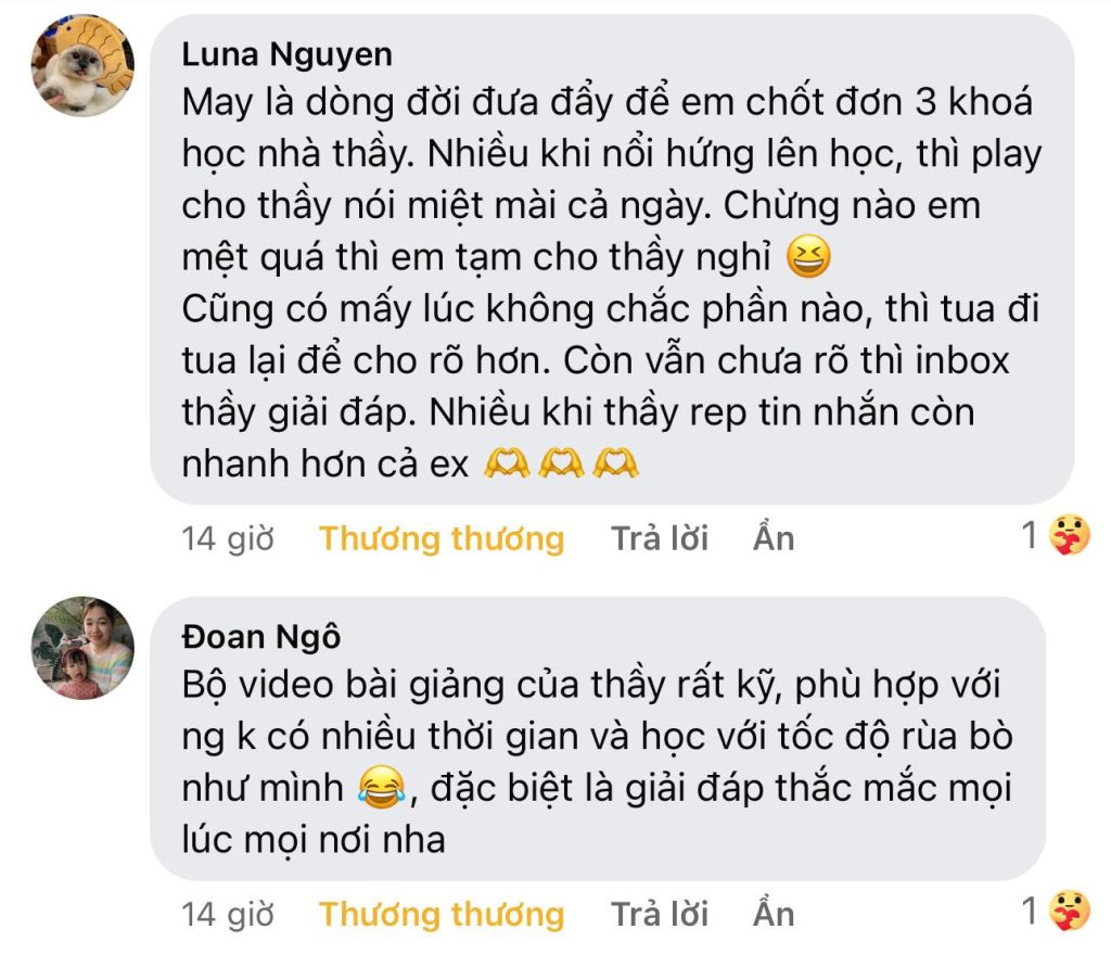 • Học linh hoạt, sở hữu trọn đời: Một trong những ưu điểm lớn của khoá học là bạn có thể sở hữu bộ video trọn đời và học bất cứ lúc nào phù hợp với lịch trình của mình.